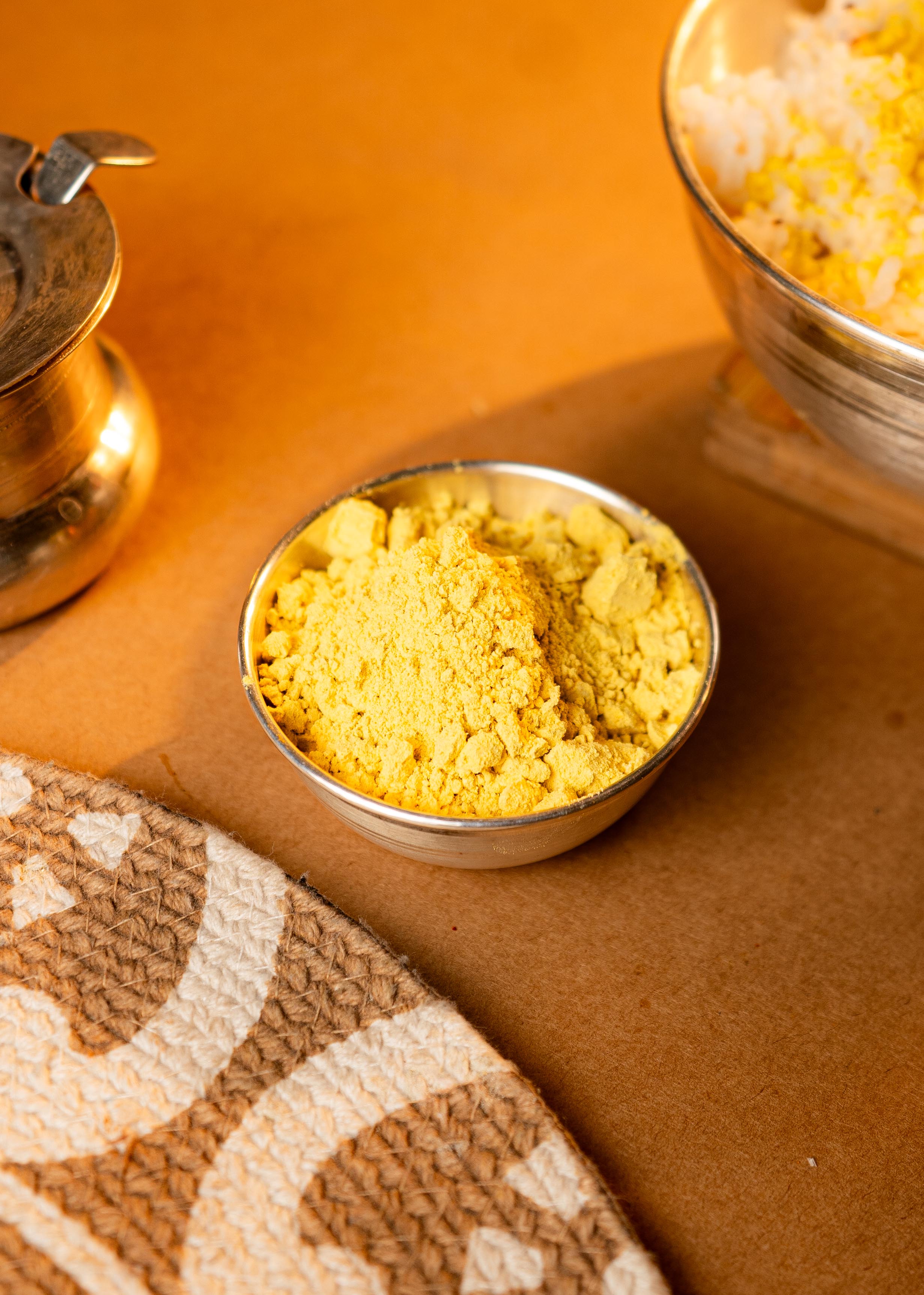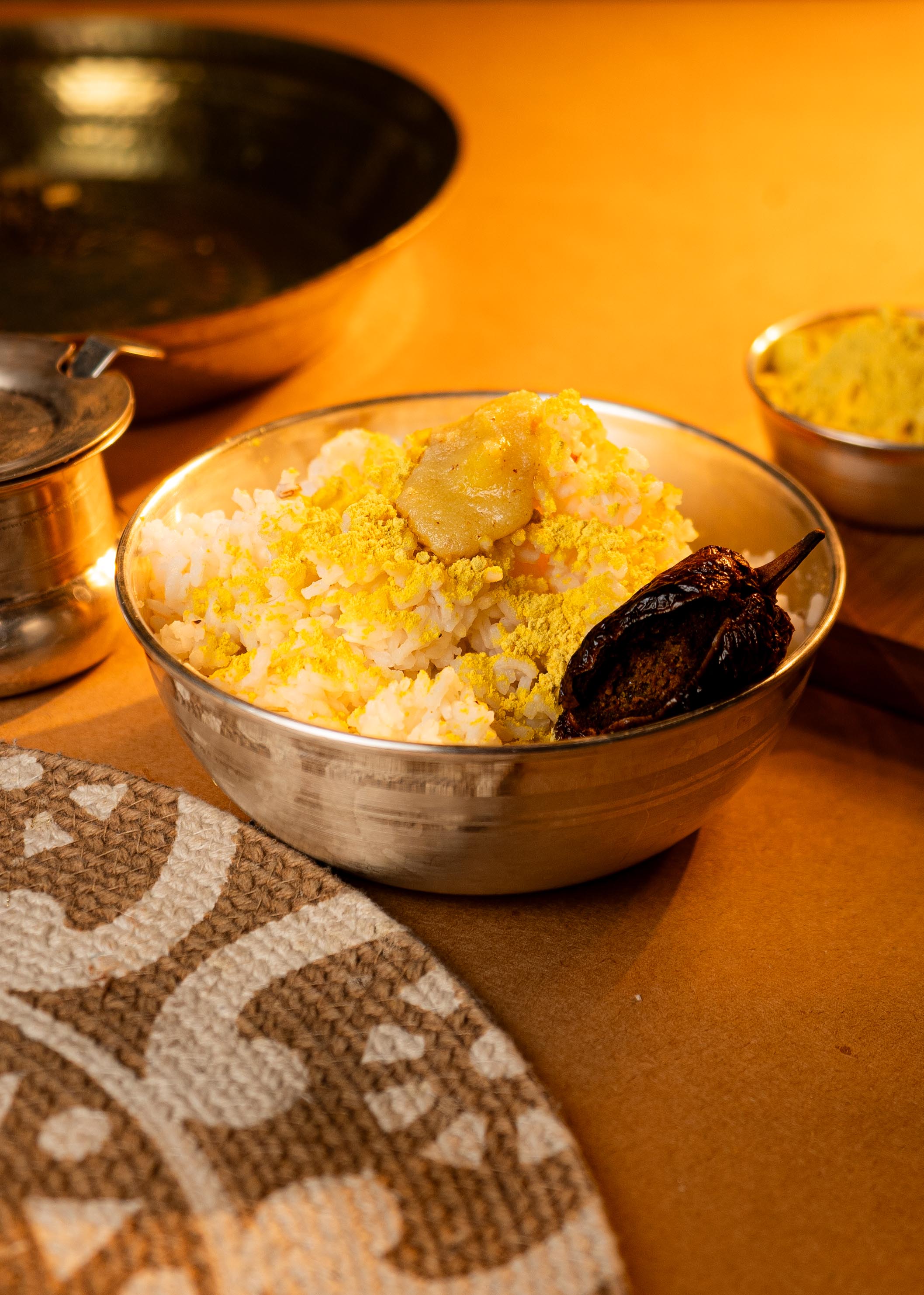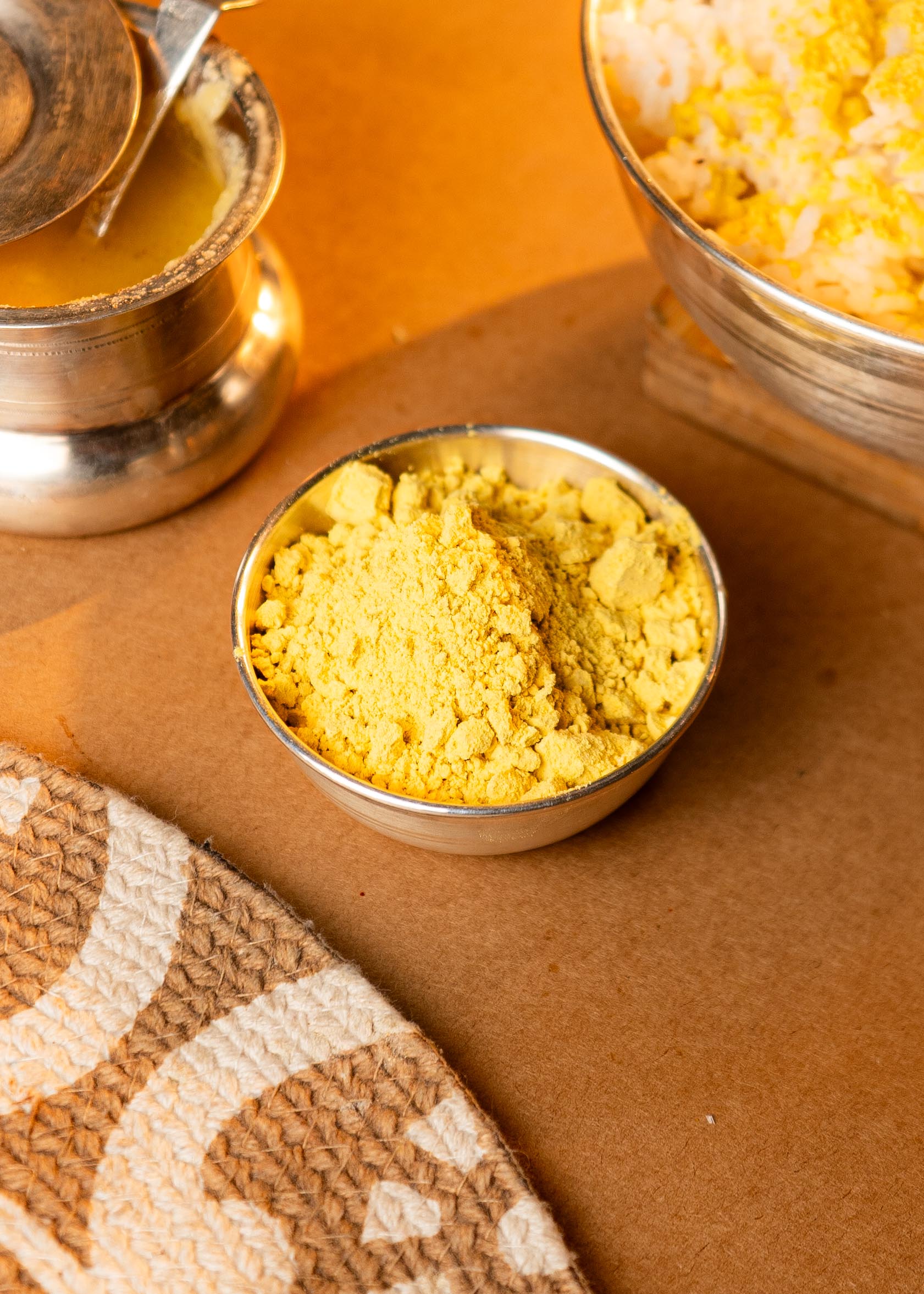 Add 1–2 teaspoons of Metkut over warm rice with a drizzle of ghee. Mix well and enjoy with papad, pickle, or a side of curd for a wholesome, comforting meal.